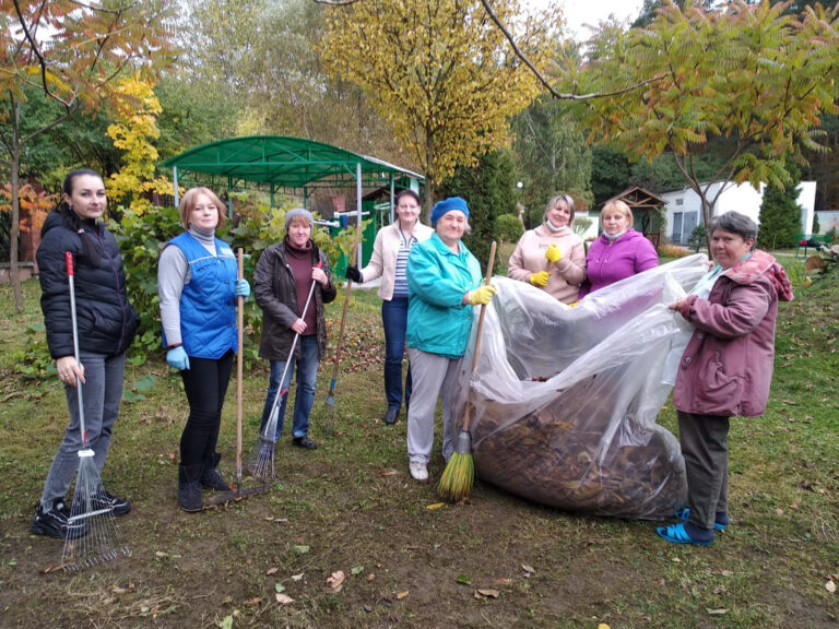 Совместно со студентами Института психологии Белорусского государственного педагогического университета имени М. Танка постояльцы интерната убрали опавшую листву, подмели дорожки, провели работу по благоустройству зон отдыха.