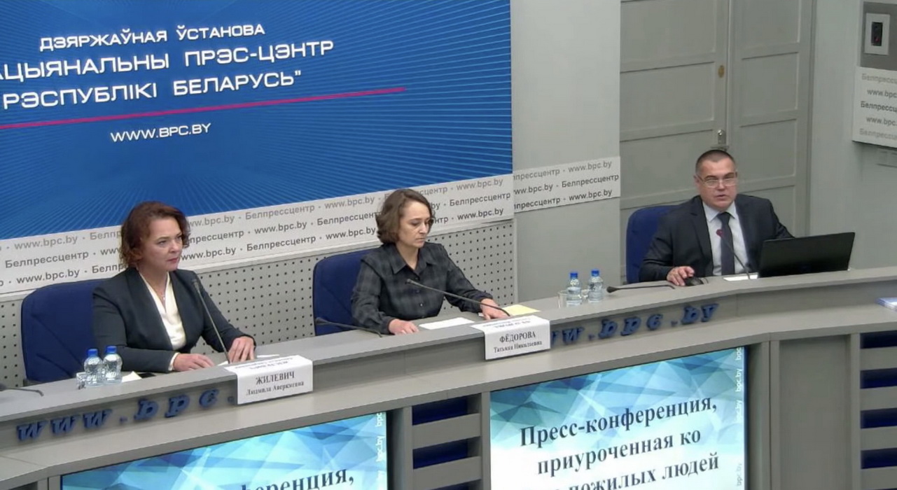 28 сентября в Национальном пресс-центре состоялась пресс-конференция, приуроченная ко Дню пожилых людей. Татьяна Фёдорова, начальник главного управления социального обслуживания и социальной помощи Министерства труда и социальной защиты и Людмила Жилевич, руководитель Республиканского геронтологического центра рассказали, как в Беларуси оказывается помощь пожилым людям.