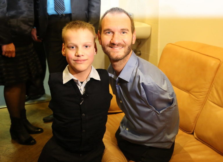 Для белорусского мальчика воспитанника Речицкого дома-интерната Адама Эссерта встреча с Ником Вуйчичем стала важным событием. Известный мотиватор, бизнесмен, а также счастливый многодетный отец лично поддержал юного белоруса.
