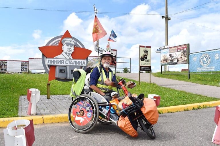 «Покатался по Минску, он великолепен!». Велопутешественник из Волгограда без ног и кистей рук на коляске-велосипеде посетил Беларусь