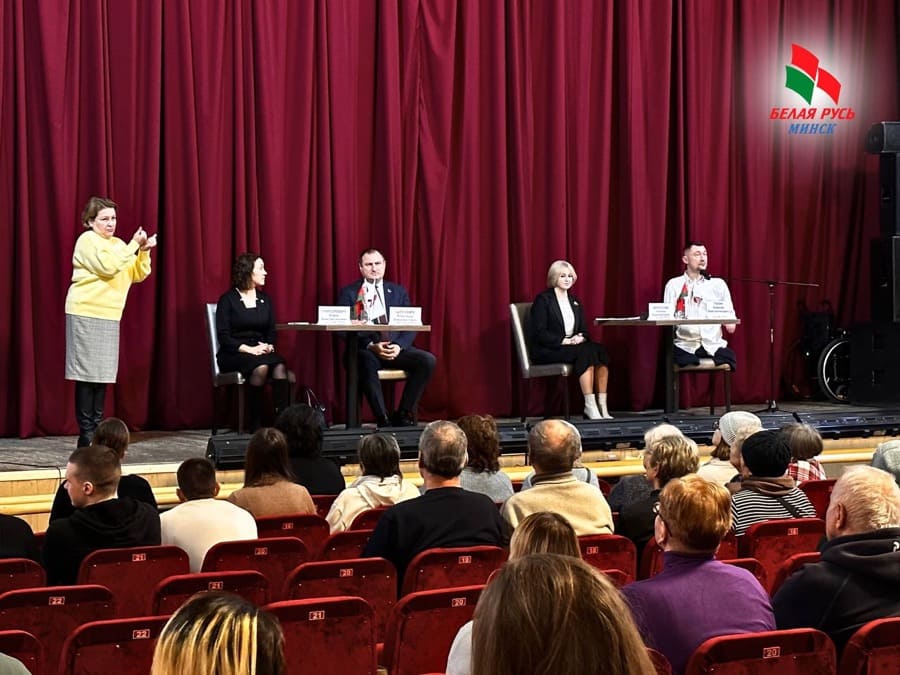 – Такая диалоговая площадка для граждан с ограниченными физическими возможностями Минской городской организацией РОО «Белая Русь» проводится во второй раз. В 2024 году перед единым днем голосования в общественную приемную обратились инвалиды с ограничениями по слуху с просьбой разъяснить новации и нюансы избирательного законодательства. И тогда впервые мы попробовали пообщаться с такой аудиторией и вся информация сопровождалась сурдопереводом. В этот электоральный период мы понимаем, что есть категория граждан, которая нуждается в проведении разъяснительной работы. Поэтому продолжили практику таких диалоговых площадок, – рассказала председатель Минской городской организации РОО «Белая Русь» Наталья Воронова.
